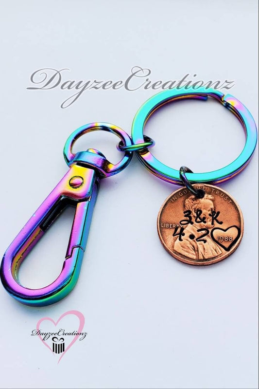 Custom Personalized Valentine's Day Penny Keychains for Him or Her
